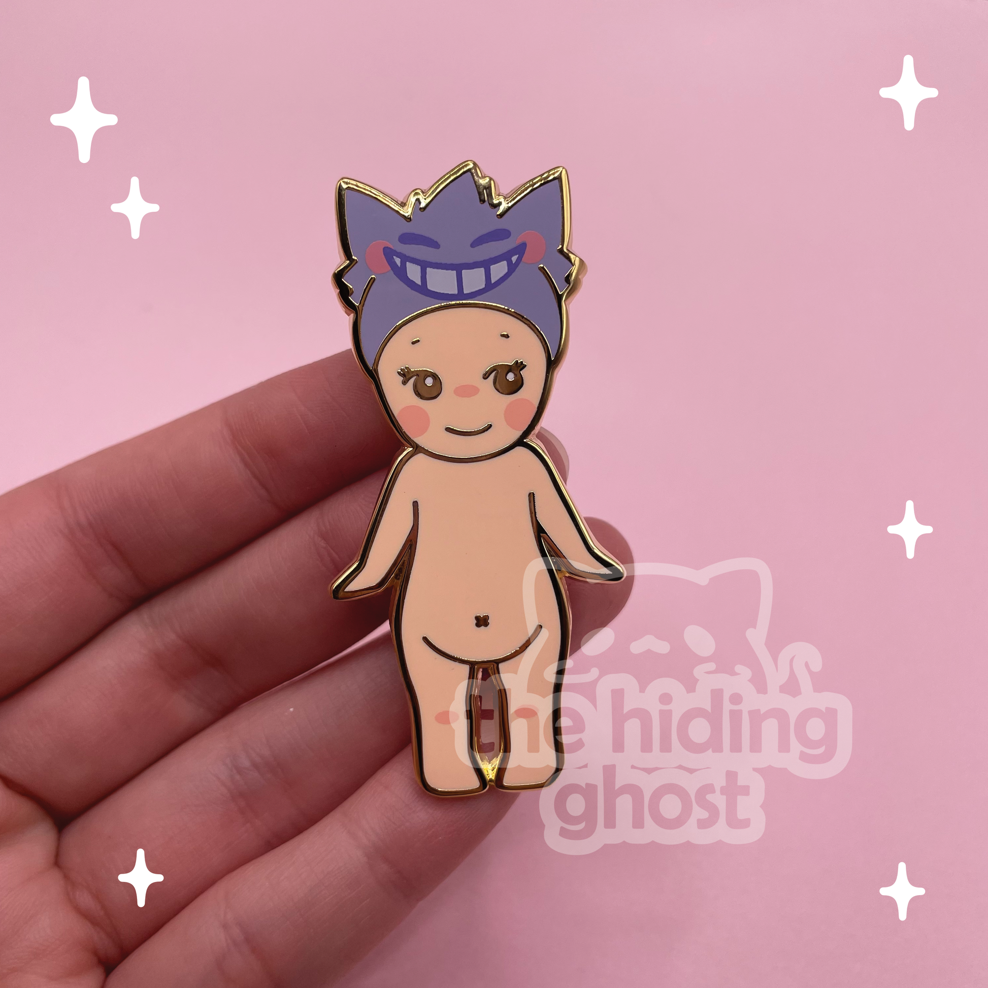 This cute Gengar Sonny Angel inspired enamel pin is perfect for anyone who loves cute and spooky things!